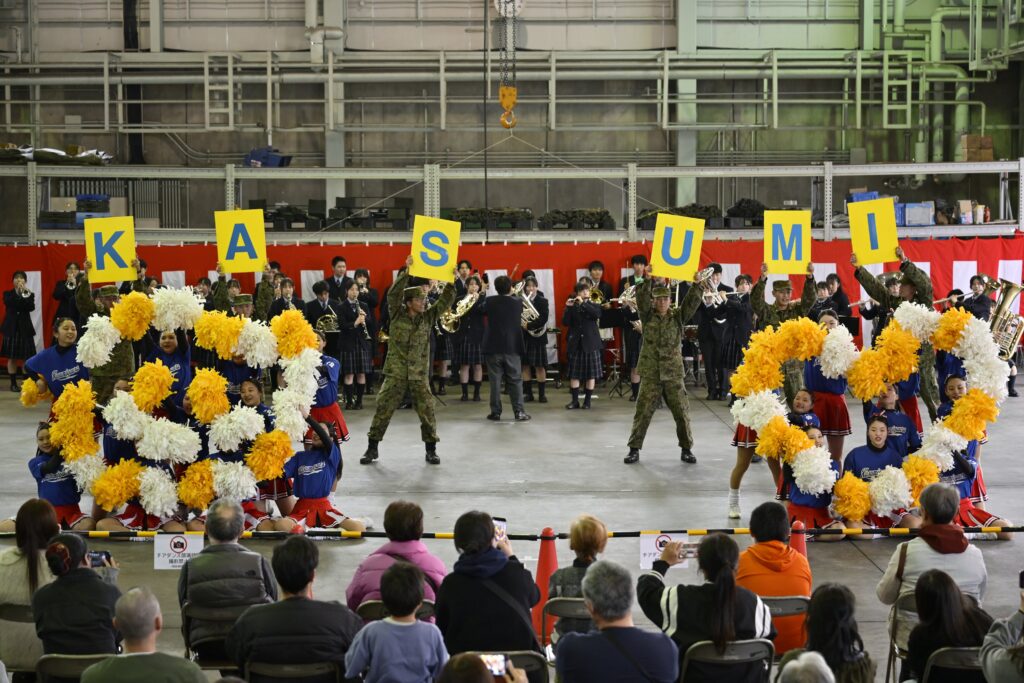 【吹奏楽部・チアダンス部 活動報告】 霞ヶ浦通信 2024.11.192024.11.28 11月10日(日)に開催された武器学校・土浦駐屯地開設72周年記念行事に出演しました。 毎年、全国から自衛隊ファンが集うこの記念行事。施設学校音楽隊の演奏や装備アトラクション、戦車体験試乗等、貴重な体験をすることができました。霞ヶ浦高校の公演は吹奏楽部の演奏に始まり、チアダンス部との応援メドレーコラボ、隊員の方々の特別出演などであっという間の40分間でした。 ご観覧くださった皆様、ありがとうございました。