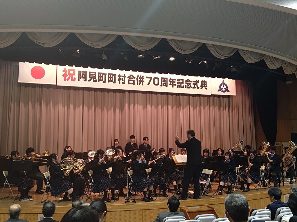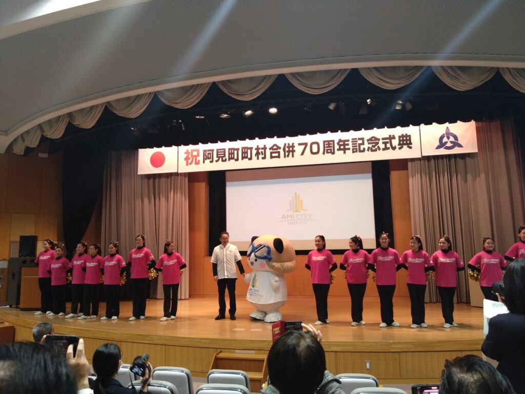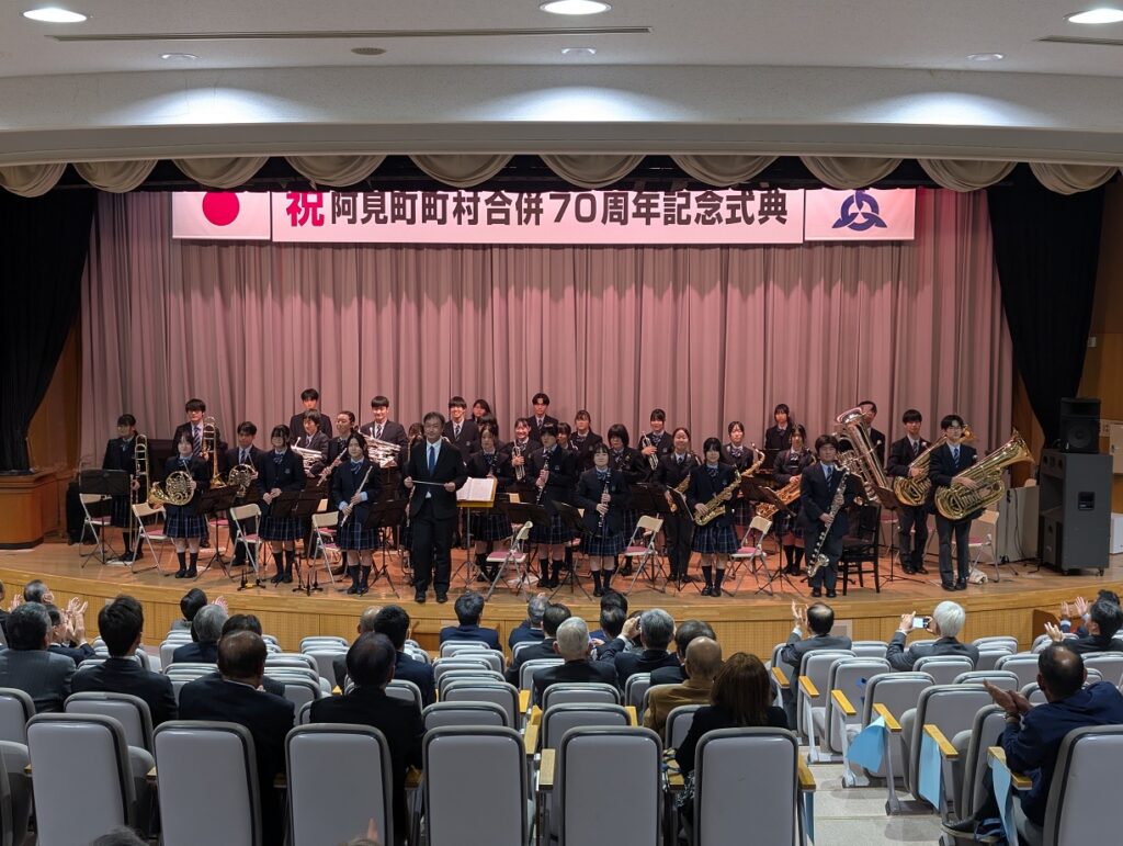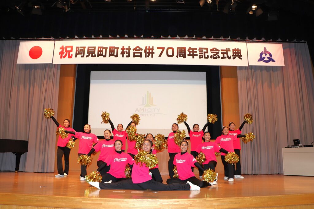 令和7年11月2日(日)に開催されました、阿見町町村合併70周年記念式典において、本校チアダンス部および吹奏楽部が出演し、会場を盛り上げました。チアダンス部が、明るくエネルギッシュなパフォーマンスを披露し、第二部として吹奏楽部が、式典の雰囲気に合わせた力強くも温かみのある演奏を行い、会場からは多くの拍手が寄せられました。今回の記念式典に参加できたことは、生徒たちにとっても、「地域の一員として貢献する」という実感を得る貴重な機会となりました。今後も、「阿見町唯一の高等学校」として地域とつながり、地域に愛される学校を目指し、さまざまな活動に取り組んでまいります。ご来場の皆様、温かいご声援をいただき、誠にありがとうございました。 学校長