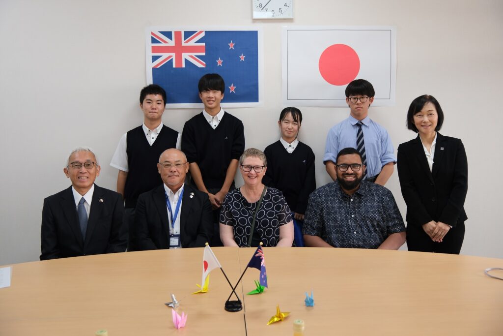 【国際交流イベントを実施しました。】 霞ヶ浦通信 2025.09.262025.09.30 7月22日(火)~8月7日(木)、ニュージーランド短期留学プログラム2025を実施しました。1年生3名、2年生1名が参加し、姉妹校アオレレカレッジで学習や交流をしました。 また、9月26日(金)には、アオレレカレッジの校長先生をはじめ、先生方が来校され、授業見学などを行いました。