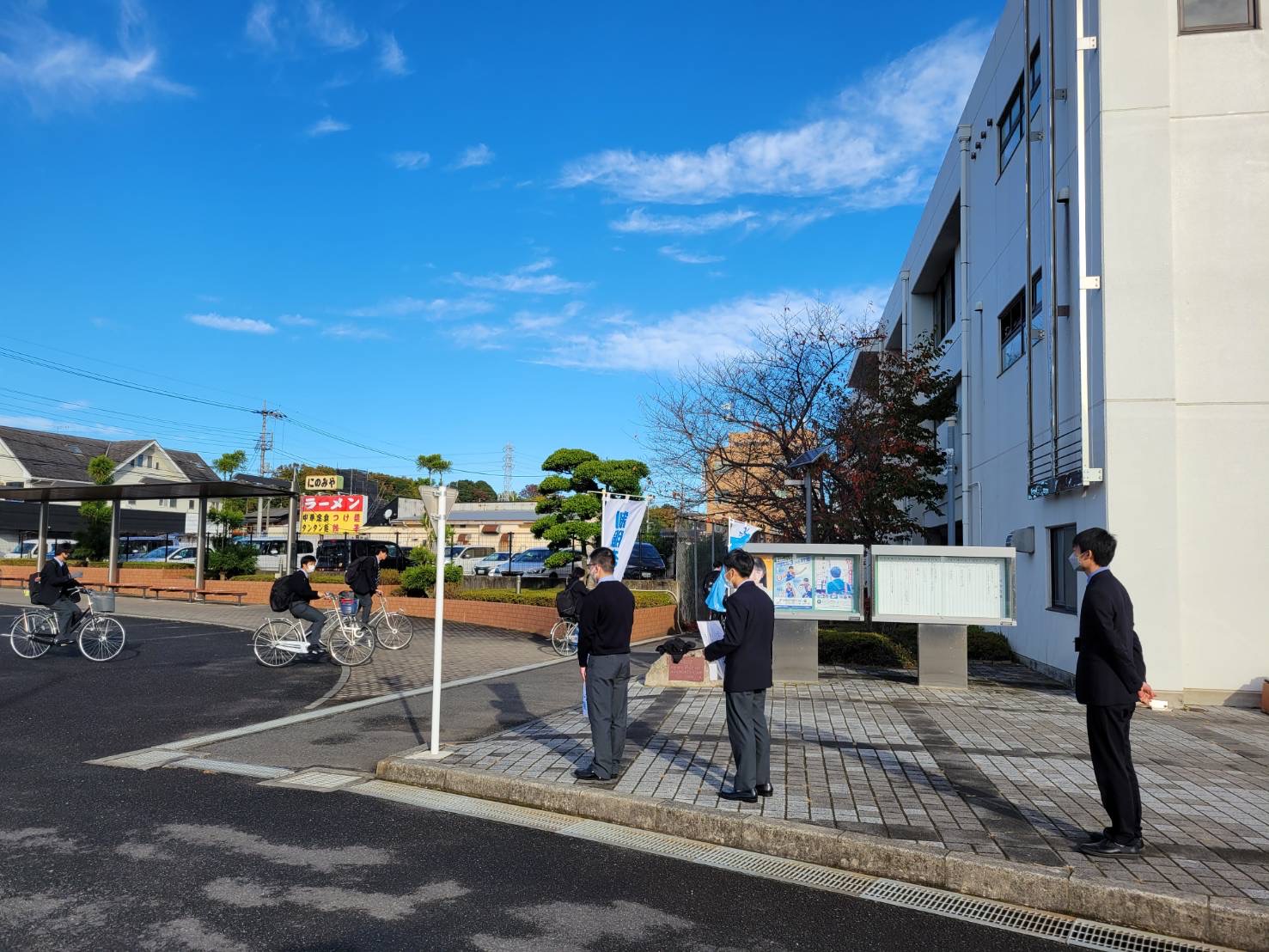 【校内さわやかマナーアップ運動を実施しています。】 霞ヶ浦通信 2022.11.16 11月14日(月)〜25日(金),『さわやかマナーアップ運動』として各クラスのマナーアップ委員が毎朝正門にて挨拶運動を行っています。