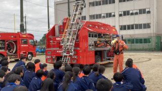 10月21日(火)、火災を想定した避難訓練を実施しました。避難後は、防災について学んだり、消火器・放水訓練等を行ったりしました。消防士を目指している生徒の質問にも丁寧に答えてくださいました。 ご協力いただきました、阿見町防災危機管理課・女...